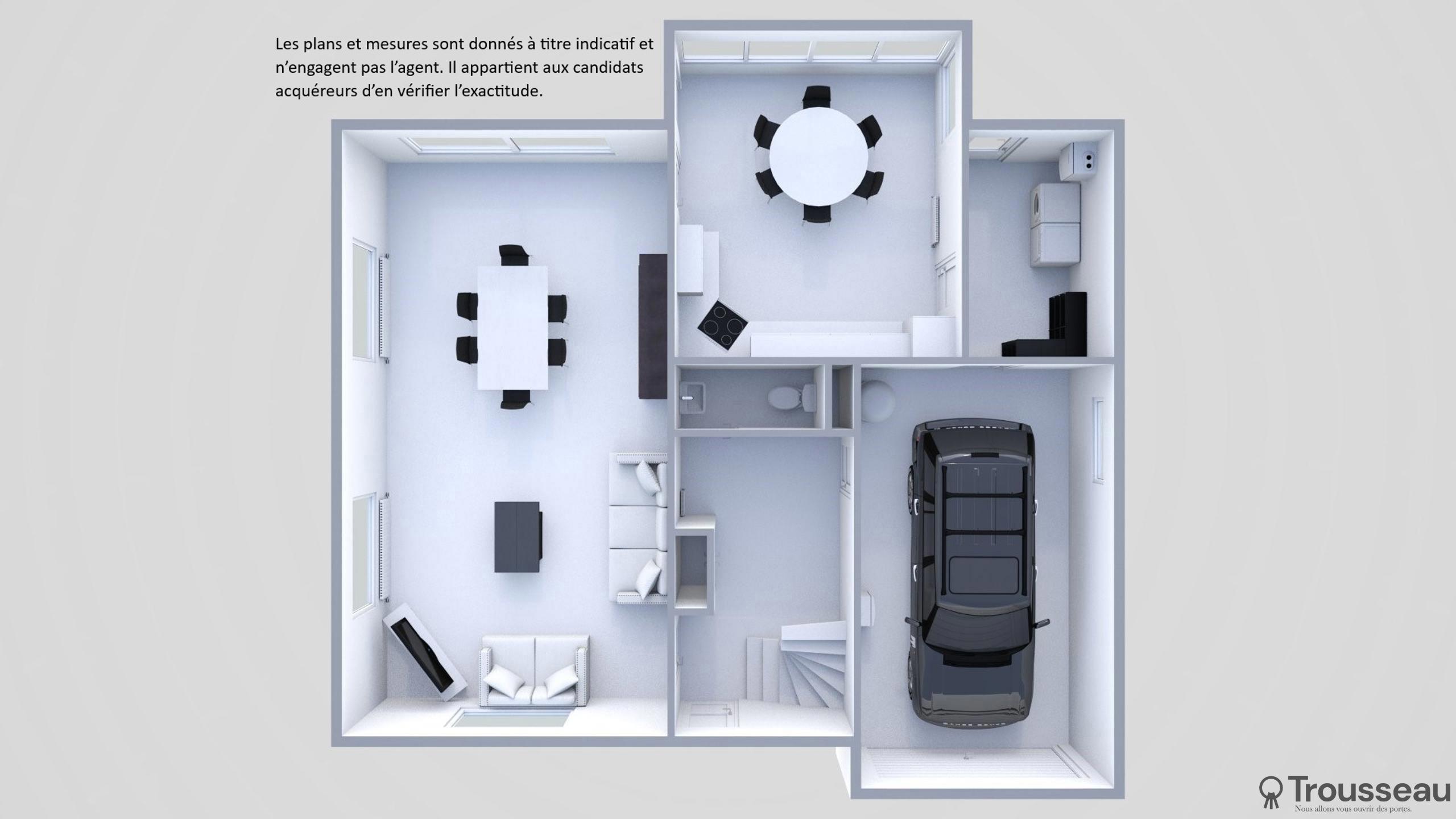Cette maison se compose, au rez-de-chaussée, d’un agréable et lumineux séjour, une cuisine avec coin repas, une buanderie, un hall d’entrée, un WC et un garage.