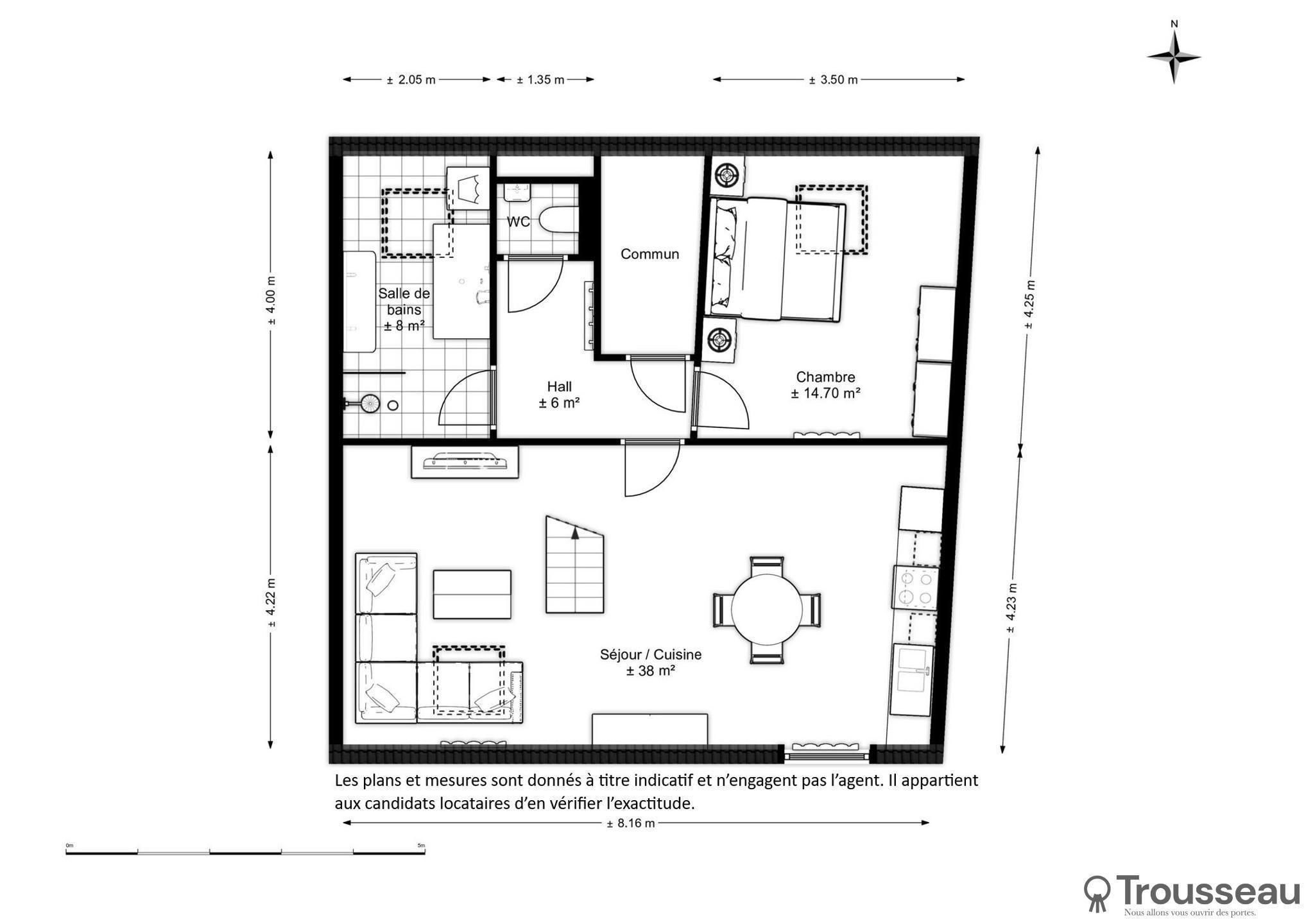 Trousseau vous propose à la location un duplex 3 chambres de 90m² à Mons.