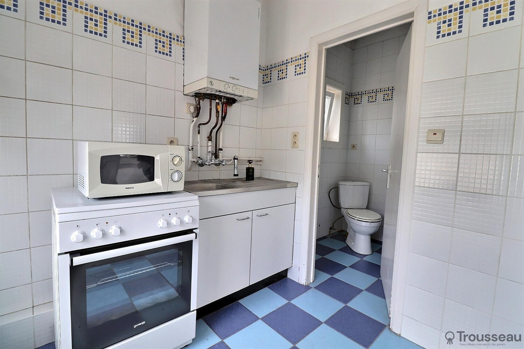 Le studio de 55m² (réf. PEB) est au 2ème étage dans un immeuble sans ascenseur, il se compose d’un living très lumineux, d’une salle de douche + WC et d’un espace cuisine.