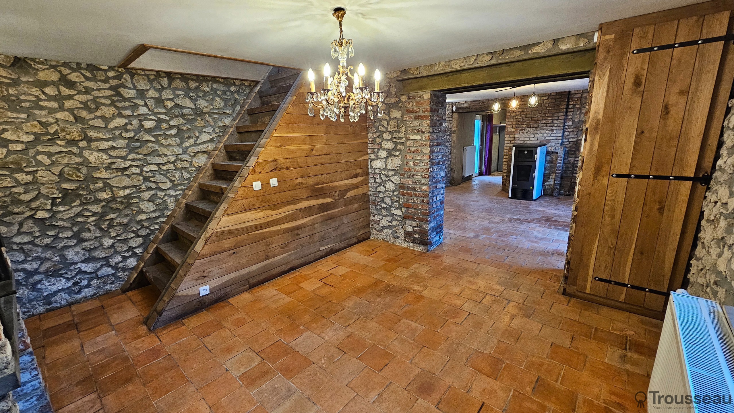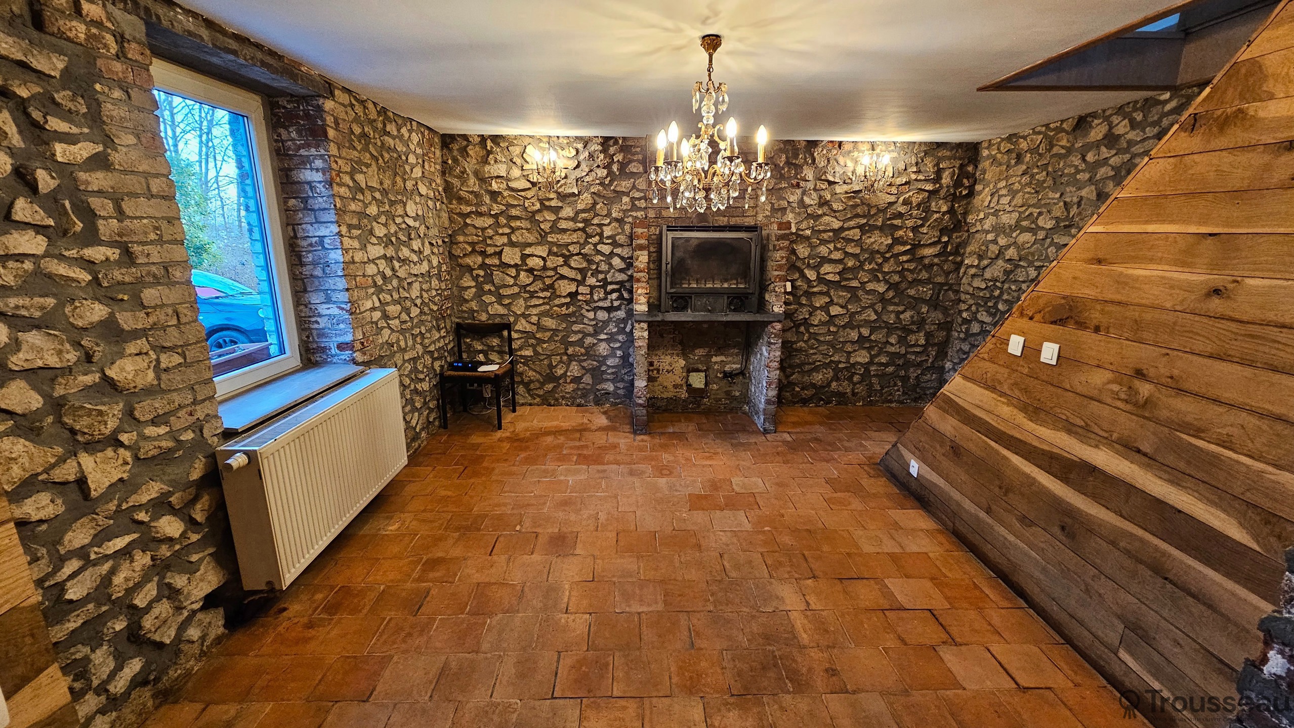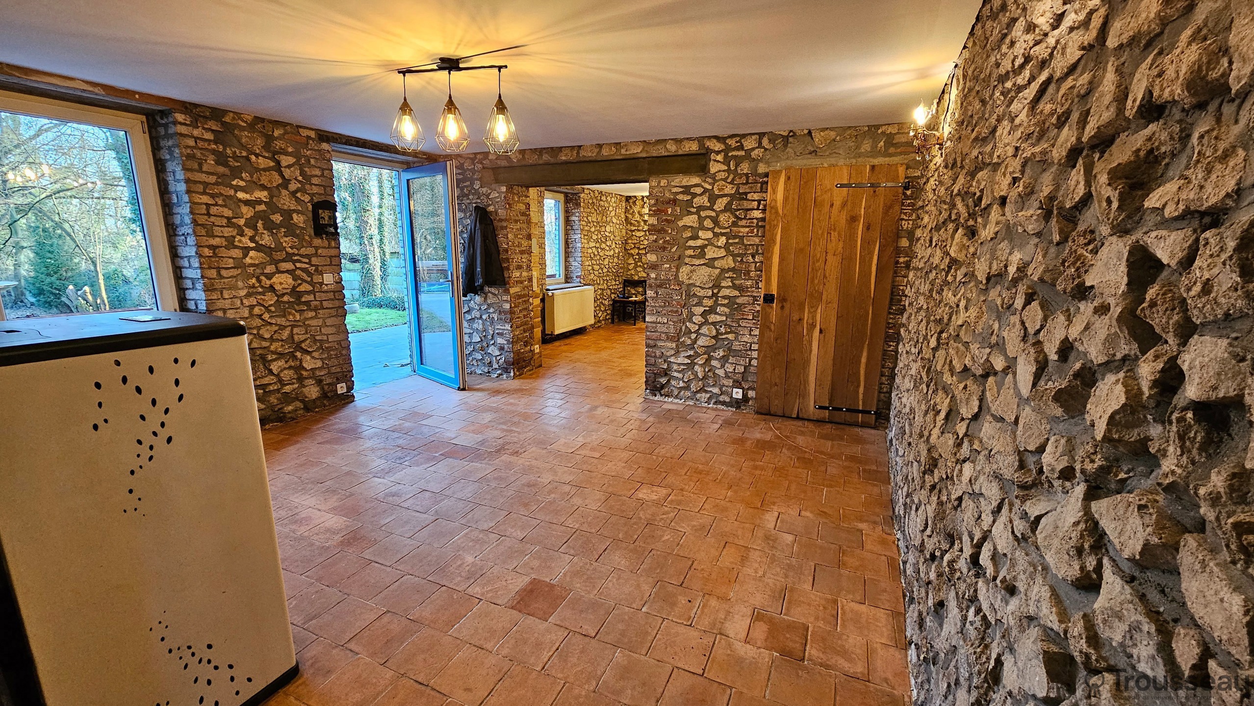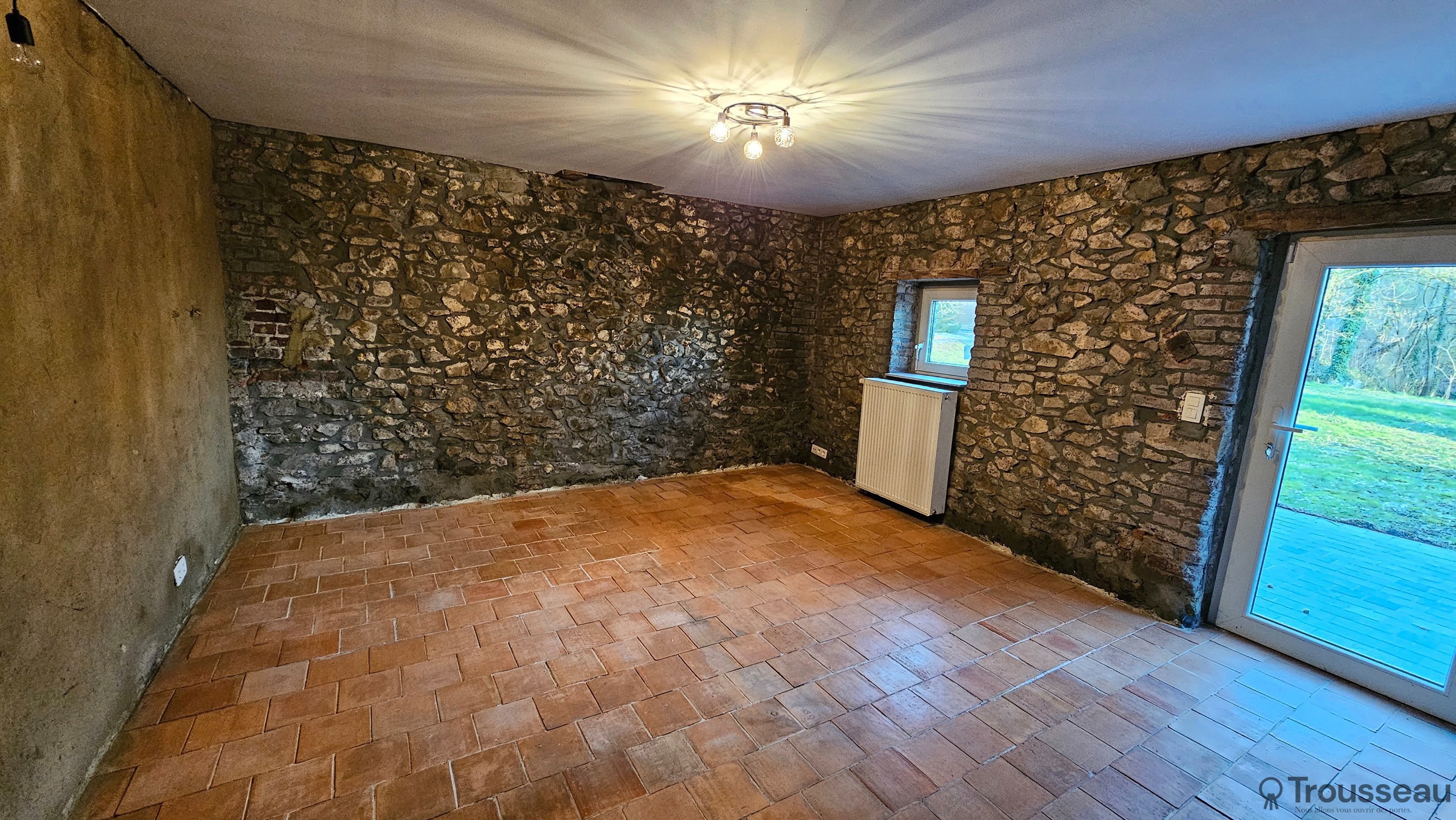Dans un cadre bucolique, cette habitation se compose comme suit: au rez-de-chaussée d’un salon et salle à manger sur +/-38m², d’une cuisine semi-équipée, d’une salle de bain avec bain&douche et d’une chambre de +/- 19,5m². L’étage se compose 4 chambres de +/- 15m² à +/- 17m² en enfilade, dont une peut servir de bureau. Au sous-sol se trouve une cave voutée de +/- 17,5m² qui est idéale pour le stockage du vin.