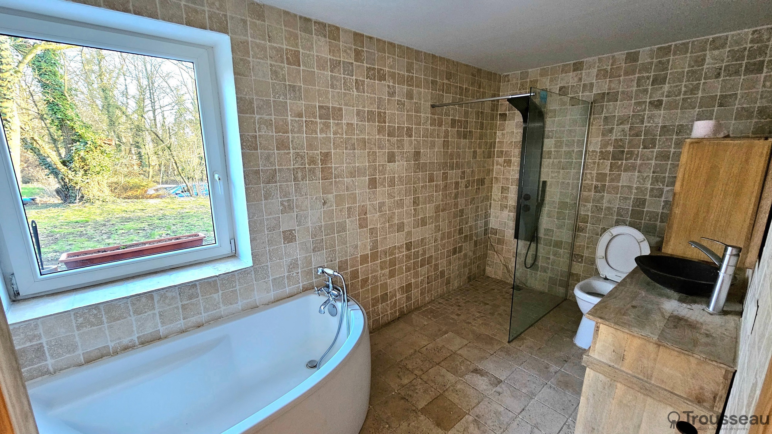 Suite à un désistement, Trousseau vous repropose à la location cette maison de caractère de 164m² (Réf. PEB) avec ses 4 chambres à l’orée d’un bois privé à Maisières.