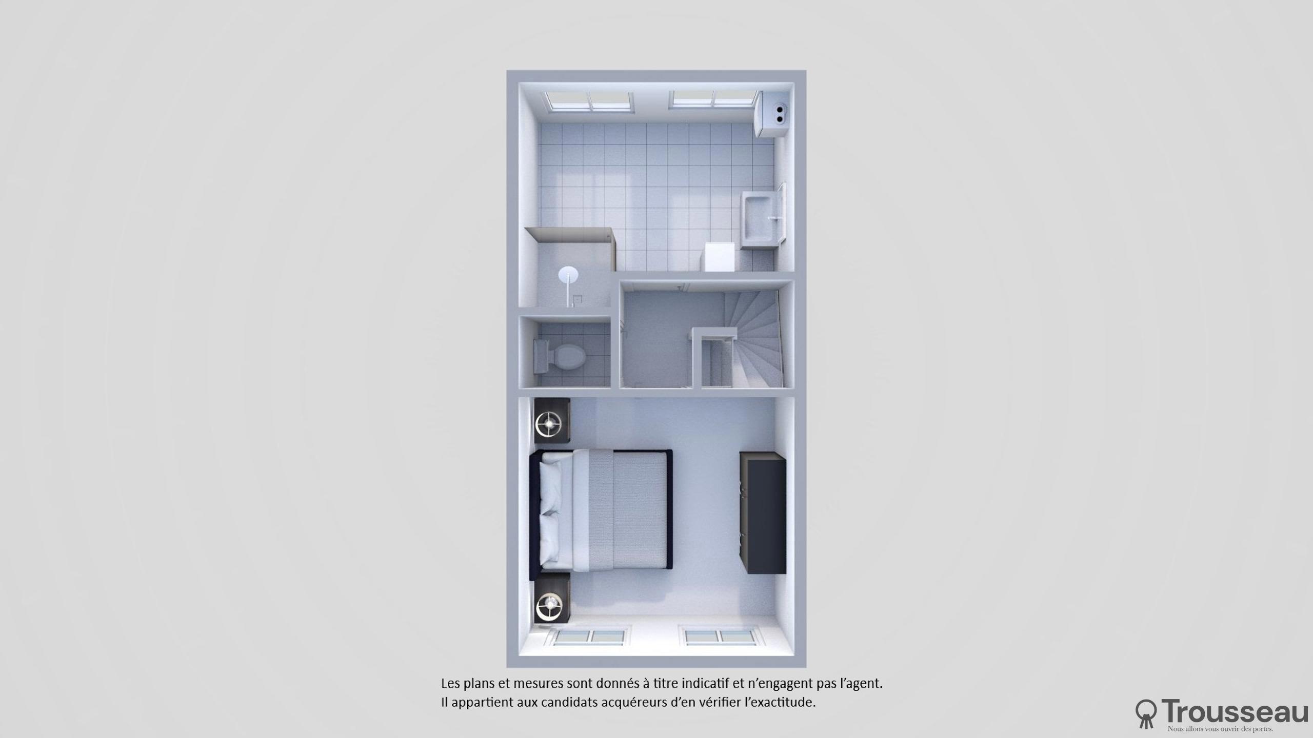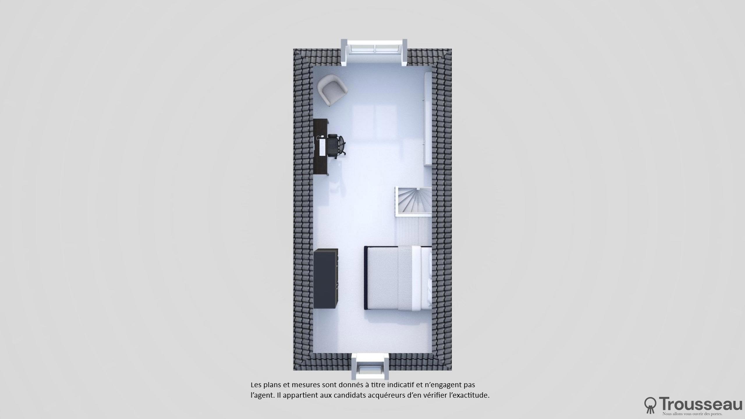 Cette maison se compose, au rez-de-chaussée, d’un séjour, d’une salle à manger et d’une cuisine. Les étages se composent de 2 chambres (10,5m² et 23m²), d’une salle de douche et d’un WC séparé.